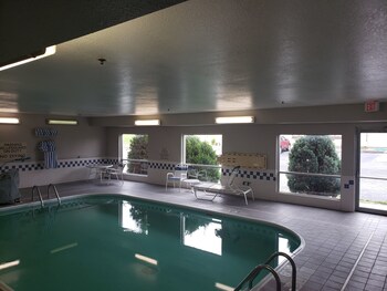 Free breakfast free WiFi indoor heated pool. Free parking is available if you drive.